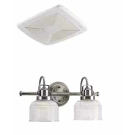 - RB110-P2991-81 (This Model): 110 CFM .6 Sone Ceiling Mounted HVI Certified Bath Fan and 2 Light 17 Inch Wide Reversible Bathroom Vanity Light