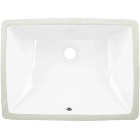 The white rectangular undermount bathroom sink features a smooth, glossy interior. Made of vitreous china, this product offers plenty of room to wash up.