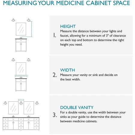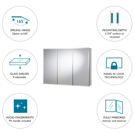 - Optional mirrored glass side panels included for surface mounting