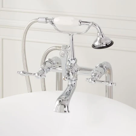 - Bridge widespread floor mounted installation – 2 hole faucet with 7″ faucet centers