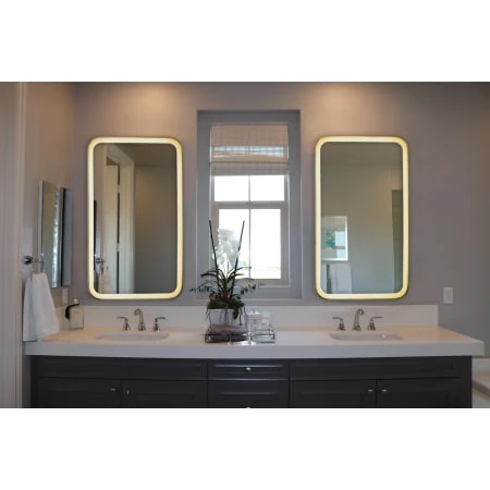 This rounded edge framed surface mount LED mirror is unique in its own way. Energy efficient long lasting LED lighting takes your bathroom to the next level. The new premium model with a sleek frosted pattern frame has both warm white 2700K and cool white 6400K color temperatures. Beautiful and functional, this LED mirror operates effortlessly for 50,000 hours, is compatible with major wall dimmer switches and features mirror front touch multi function control. The high quality copper free mirror has superior corrosion resistance to prevent black edges and will provide you with many years of enjoyment.