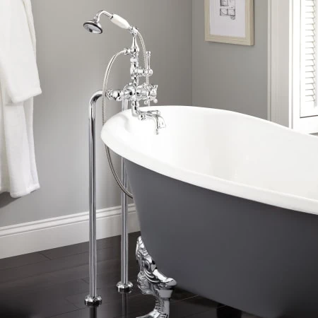 - Bridge widespread floor mounted installation – 2 hole faucet with 7″ faucet centers