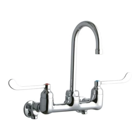 Elkay Low Lead Compliant 8″ Centerset Wall Mount Service Sink Faucet with 5-1/8″ Reach Gooseneck Spout and 6″ Blade Handles