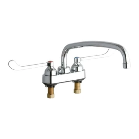 Elkay Low Lead Compliant ADA 4″ Centerset Exposed Utility Faucet with 12″ Reach Arc Tube Spout and 6″ Blade Handles