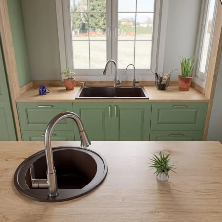 The ALFI brand granite composite kitchen sinks are a great choice for any kitchen remodel! Durable material and a variety of sizes, shapes, and colors provide you with a unique and long lasting sink that is sure to make cooking more enjoyable. Modern design and smooth surfaces create a flawless look for years to come.