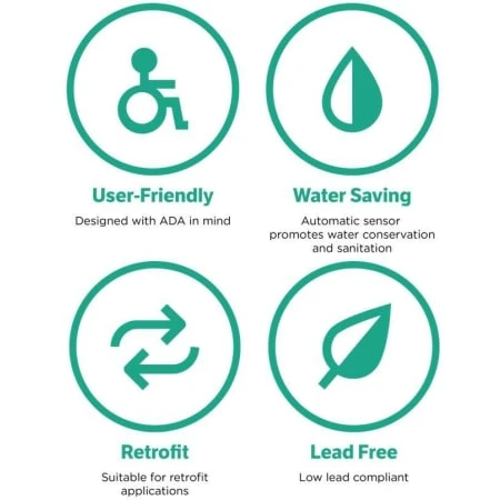 - Battery-powered faucet uses 4 standard AA batteries – hardwired, plug-in, or our EcoVantage Hydroelectric Generator power options are available for continued operation in high-usage environments