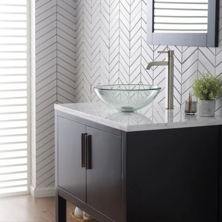 - Handcrafted Tempered Glass Sink: Non-porous surface is resistant to scratches, stains, thermal shock, fading, and discoloration