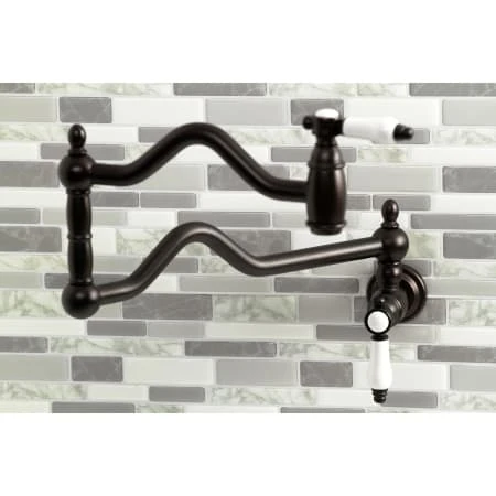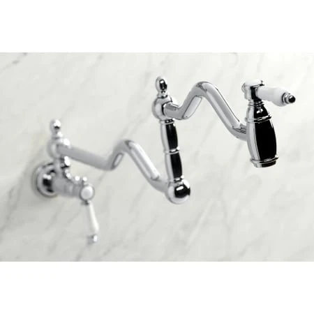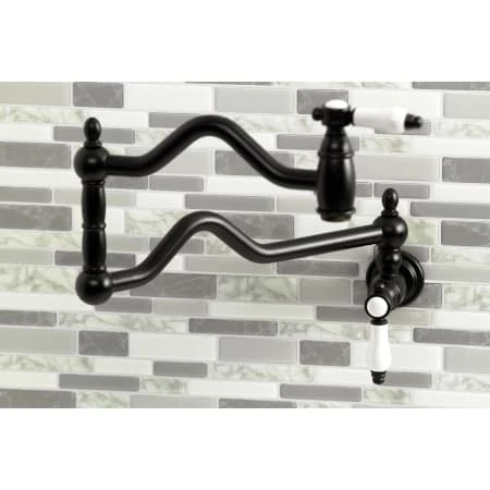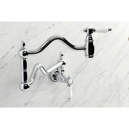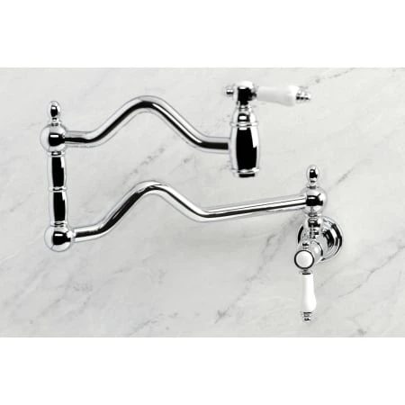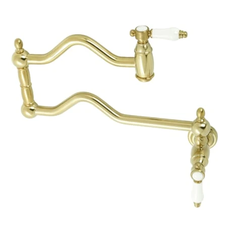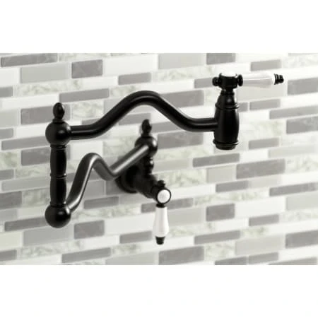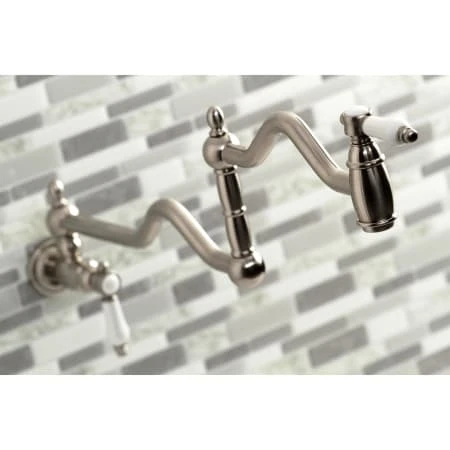 The graceful elegance of a timeless design is beautifully merged between British flair and Victorian delicacy within this faucet’s white porcelain levers. As an excellent tool to quickly, easily, and stylishly fill pots, eliminate strain on your joints. Pot-fillers are useful gadgets placed directly above the stove, providing easily accessible water. The foldable swing arms of this pot filler allow for an extendable reach of up to 22″ of length and provide long-lasting function due to their sturdy brass construction. Additionally, the dual handles prevent unwanted water spillage while enhancing the traditional theme.