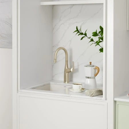 The PRECIS Undermount Bar Sink offers clean lines and a compact single bowl design, making it the perfect solution for small spaces. This kitchen sink is made of SILGRANIT, a patented, certified granite composite material that is engineered to take on the toughest kitchen tasks. SILGRANIT is heat, scratch, stain, chip, and impact resistant, making it stronger and more durable than other sink materials. Beautiful and highly functional with its non-porous, hygienic surface, it pushes away liquids and residue resulting in a low maintenance, easy to clean, long-lasting material. The PRECIS Bar Sink easily conquers the demands of everyday life and is an ideal choice for your bar area or butler’s pantry. A pop of color could be the perfect finishing touch.