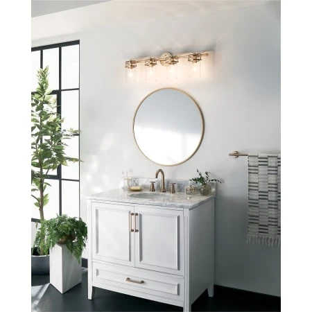 Brinley 32-1/2″ vanity light features a vintage look with clear glass. Inspired by mason jars, the Brinley vanity light is perfect in several aesthetic environments, including vintage and transitional