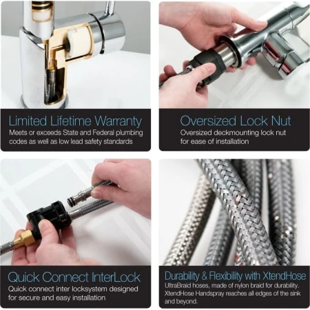 - XtendHose: Reaches all edges of sink and beyond with 20+ inches of hose