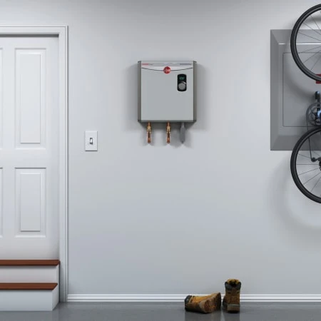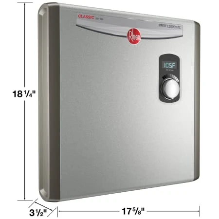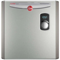 This water heater offers quick, continuous hot water that is on demand for single point-of-use or multiple applications.Robust copper immersion heating elements with brass top increases durability and are threaded for easy replacement. Simple installation and digital temperature display.