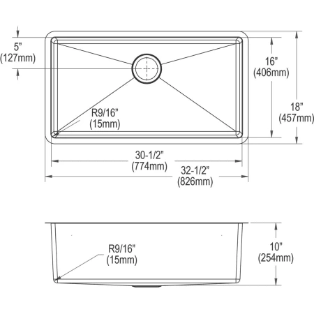 - Basin Dimensions: 30-1/2″ L x 16″ W x 10″ D