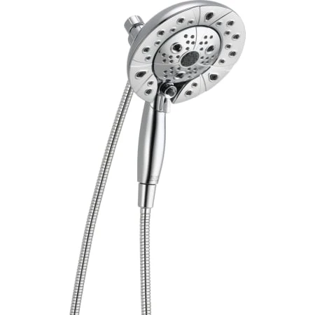 - Integrated hand shower docks securely into shower head when not in use