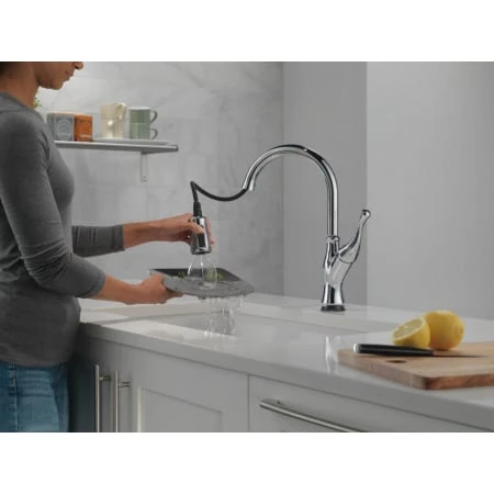 - MagnaTite: Delta MagnaTite Docking uses a powerful integrated magnet to snap your faucet spray wand precisely into place and hold it there so it stays docked when not in use and doesn’t droop over time.