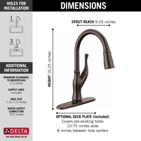 - Faucet includes an optional escutcheon plate to cover unused faucet holes