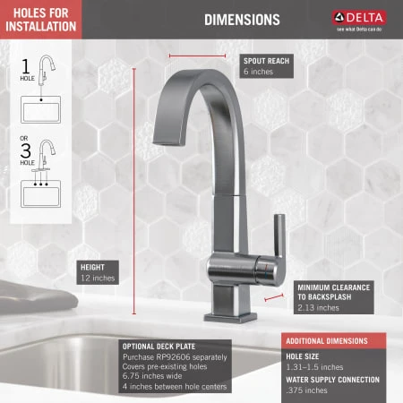 - Spout Reach: 6″ (center of faucet body to center of spout outlet)