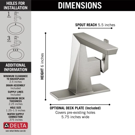 - Faucet Holes: 1, 3 (minimum number of holes required for installation)