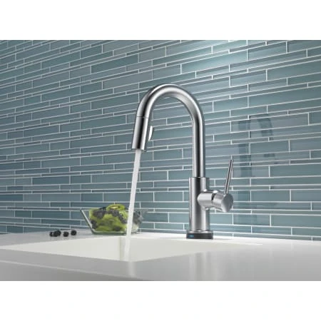 Touch2O® Technology: Sometimes your hands could use a hand, which is why we designed Delta® Touch2O Technology for the kitchen. With a simple touch anywhere on the spout or handle using your wrist or forearm, you can start or stop the flow of water from your faucet. The temperature and flow rate are easily set by your faucet handle for simple operation, designed to make everyday kitchen tasks a little easier. The built-in Delta TempSense™ LED light at the base of the faucet indicates the temperature of the water, eliminating any possible surprises or discomfort. Touch it on. Touch it off. Experience the convenience and control of Delta kitchen faucets featuring Touch2O Technology.