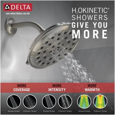- H2Okinetic®: Shower technology sculpts water into a unique pattern, forming a powerful drench spray. It gives you the feeling of more water without using more water. The water-sculpting fluidics chips produce more saturating coverage. It mimics the sensation of dense natural rainfall