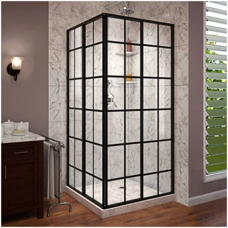 The DreamLine French Corner sliding shower enclosure is a perfect complement to a modern industrial bathroom style with a European vibe. The satin black window pane design and hardware finish will add bold style to any bathroom. The French Corner is designed for a corner installation providing an effective solution to maximize space. The four panel configuration includes two corner-opening sliding doors to create a spacious center walk through. Update the style in your bathroom with the French Corner sliding shower enclosure. DreamLine has the ultimate solution for your shower project.