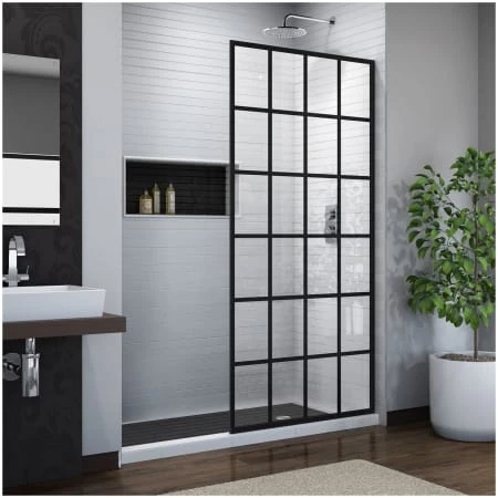 The DreamLine Toulon, part of the French Linea collection, is a single panel, walk-in shower design with a modern industrial touch to complement your shower space. The Toulon has a stylish window pane look, with a satin black finish that is bold and striking in any bathroom. The glass pattern is made using an application of JetGlaze durable paint, offering a unique style without the metal framing for easy maintenance. DreamLine exclusive ClearMax water repellant and stain resistant glass coating adds superior protection from stains and is nearly maintenance-free. Expand the possibility for efficient use of space with the bright and open design of a doorless shower with the DreamLine Toulon from the French Linea collection!