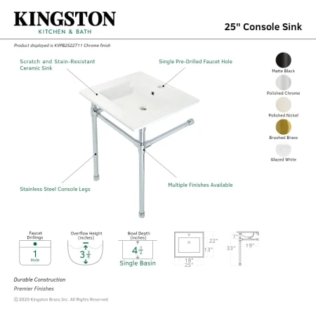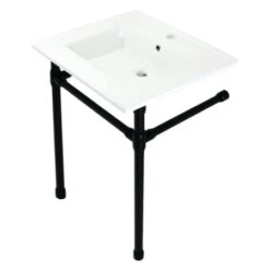 With a beautiful ceramic countertop, this console sink set is a long-lasting, durable, and elegant addition to your bathroom. A fabulous alternative where space is limited or tight, making them friendly for the whole family. The pristine, stain-resistant surface and glistening finish make for a very sturdy fixture that is easily maintained. Also for your convenience, anti-slip rubber pads are included with the stainless steel legs to ensure steadiness. The water supply kit, drain assembly, and faucet are sold separately.