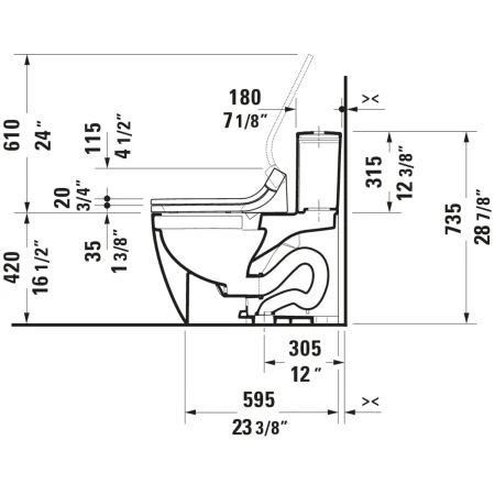 - Overall Height: 28-7/8″ (from bottom of the base to the highest point of the toilet)
