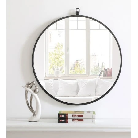 - MR406X-42: Eternity 42 Inch Diameter Circular Flat Metal Framed Wall Mirror with Decorative Hook