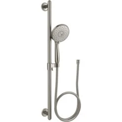 - Includes hand shower, hose, slidebar and transitional slidebar trim.