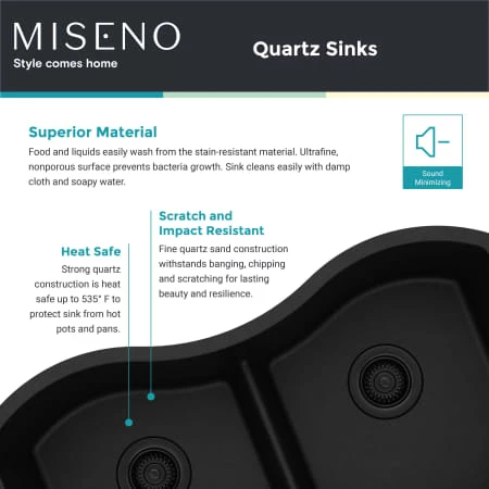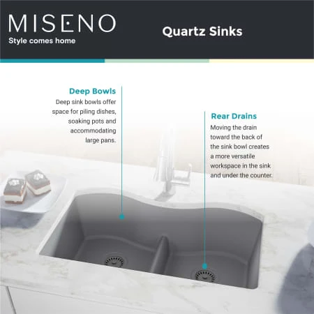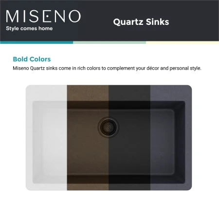 - Beautiful, Stain Resistant Colors: Miseno quartz sinks come in rich, bold colors to complement your decor and personal style. Food and liquids easily wash from the stain-resistant material.