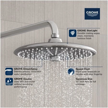 - EcoJoy Technology: The highly innovative Grohe EcoJoy™ technology reduces water consumption by up to 50% without compromising on performance.