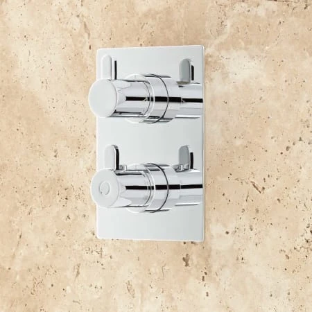 - Thermostatic cartridge – separate dials control volume and temperature independently