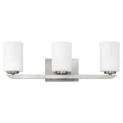 Clean and crisp, Kyra’s minimalist design is anchored with a bold yet simple aesthetic. The sleek cross bar ends with a subtle curve for an element of softness. Rich finish options of Brushed Nickel or Polished Nickel complement the elegant etched opal glass.