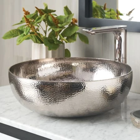 Functionality and craftsmanship fuse eloquently in the Maestro Round. It effortlessly boasts volume, a clean silhouette, and an alluring, statement-making finish. Artisan-crafted of high-quality recycled copper, this vessel sink adds an elegant finishing touch to any bathroom space. Thousands of precise hammer strikes create this one-of-a-kind, functional work of art.