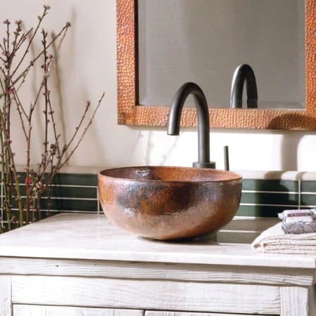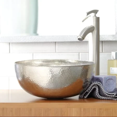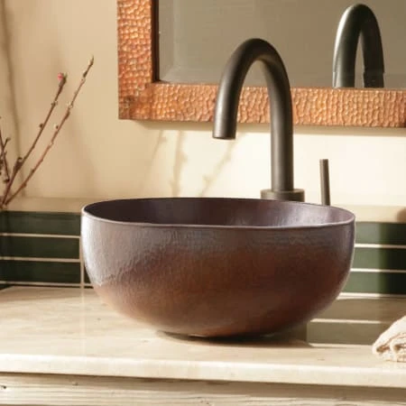 The Maestro Petit will be a celebrated addition to any smaller bathroom space, contemporary or traditional. A compact, round copper vessel sink, the Maestro Petit features a sleek hand-hammered texture – a welcome detail to enhance the sink’s radiant finish. Forged of high-quality recycled copper, each piece displays a one-of-a-kind character.