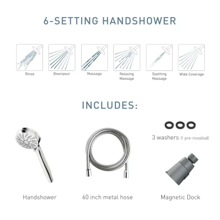 - Hand Shower Package Includes: Hand shower, hose, and holding bracket