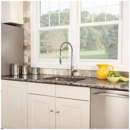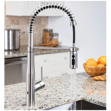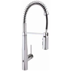 Crafted to maximize modern style in the kitchen, the Neo sensor spring kitchen faucet delivers incredible Hands-Free and Pull Down functionality with a decorator’s eye for design. The advanced sensor technology allows you to wash away grime and germs without touching a thing while the spring neck delivers enhanced maneuverability around even the largest commercial-grade sinks.