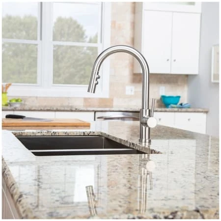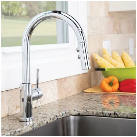 The Neo sensor pull down kitchen faucet makes a sleek statement. The advanced sensor technology allows you to turn the faucet on with hands-free convenience, while the pull down wand’s two-function sprayer provides great maneuverability and water delivery around the sink.