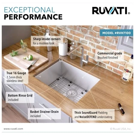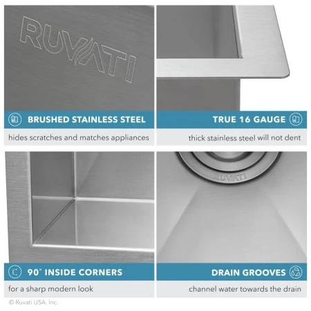- Commercial Grade Finish: Easy to clean and long lasting. Unlike satin finish, Ruvati’s brushed finish masks scratches and matches well with your kitchen appliances