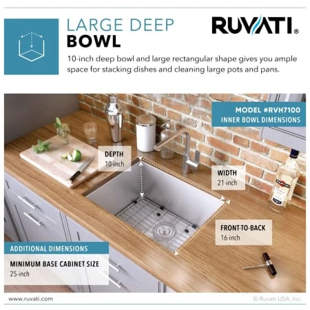- Basin Dimensions: 21″ L x 16″ W x 10″ D