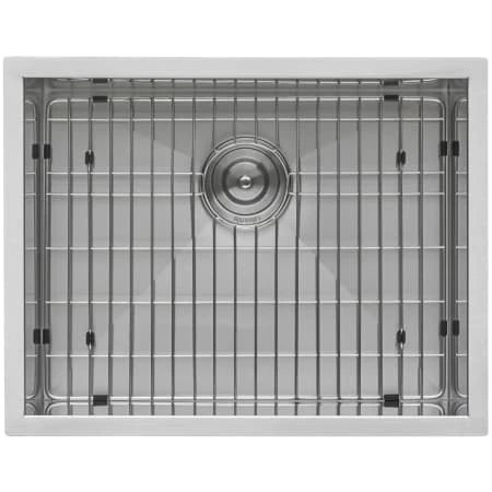- Included in box: Sink, cut-out template, mounting brackets, rinse grid, basket strainer