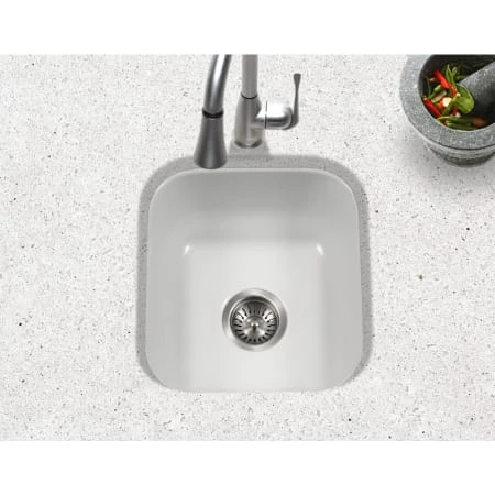 - Stoneguard Undercoating: Stoneguard Undercoating is applied to Houzer sinks with sound absorption technology, making the exterior of the basin fully insulated from the noise of clanging dishes, pots and pans. The application of Stoneguard Undercoating makes Houzer sinks among the quietest sinks available today.