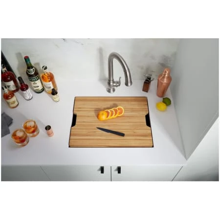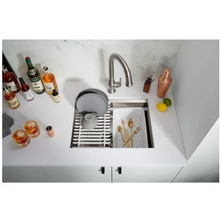 Create a highly functional kitchen or entertainment workstation with the Prolific sink and its included accessories. This innovative stainless-steel sink features three graduated ledges in the basin, so you can place the bamboo cutting board, grated racks (two), colander, and washbin exactly where you want them for maximum efficiency as you work. The sink comes with all five accessories included. Other features include a unique cone-shaped drain for easier cleanup and SilentShield sound absorption for less noise.
