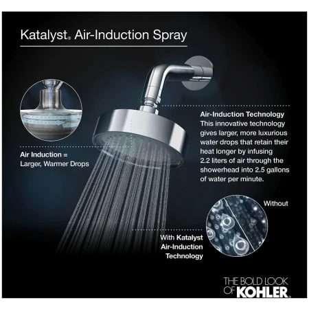 - Katalyst®: Air-induction technology delivers a sensational showering experience by infusing air into the water for bigger, warmer and voluptuous water droplets capable to embrace your body like an invigorating rainforest waterfall