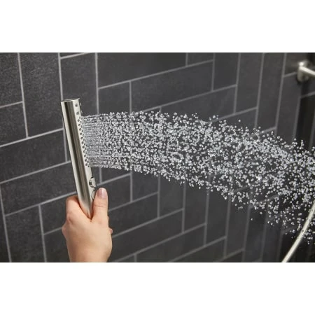 Your perfect shower spray, delivered at the touch of a button. The sleek, contemporary Shift+ handshower includes a push-button for effortless transition between full-coverage and targeted massage sprays, all enhanced with Katalyst technology for a completely indulgent showering experience. By infusing two liters of air per minute, Katalyst produces a powerful, voluptuous spray that clings to the body with larger, fuller water drops.