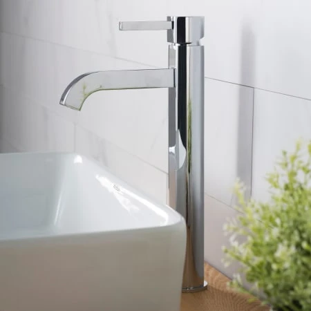 - Universal Design: Vessel faucet coordinates with any vessel sink