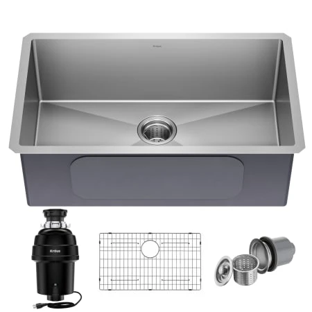 KRAUS® Standart PRO™ Series Sinks feature sleek modern designs with straight walls and easy-to-clean rounded corners that create a beautifully contemporary look in any kitchen. Undermount installation creates a seamless transition between sink and countertop for an integrated look, with no exposed mounting deck to trap food and debris for easy cleaning. Standart PRO™ sinks are made with heavy-duty TRU16™-gauge stainless steel for long-lasting durability with great resistance to dents and damage. Perfect for busy kitchens, the wear-resistant finish is easy to clean and not prone to corrosion, while rounded corners help reduce buildup over time. This kit also includes the KRAUS® WasteGuard™ 1 HP Continuous Feed Garbage Disposal with Ultra-Quiet Motor for Kitchen Sinks. Featuring a MagnaGrind™ 3800 RPM 1 Horsepower permanent-magnet motor that ensures faster operation than traditional induction motors. Motor-saving shut-off technology instantly cuts power to the disposal in the event of a blockage to help prevent damage to the motor. Built for long-lasting use, the stainless steel grinding components are encased in ABS housing and insulated with QuietStorm™ soundproofing technology for quiet operation. Mounting is simple with an EZLock™ assembly that locks into place with a turn of the hand. The universal design fits standard US plumbing and sinks with round 3 1/2” drain openings. An included stopper allows you to fill up the sink bowl for soaking dishes, with an extended tailpiece that doubles as a plunger to safely push stubborn food scraps into the disposal. Comes with a complete garbage disposal install kit, including power cord and flange.