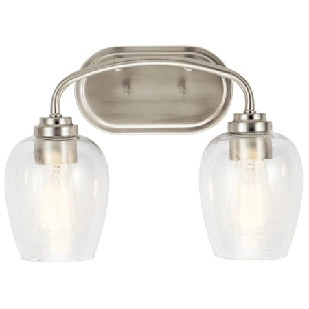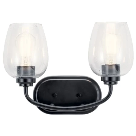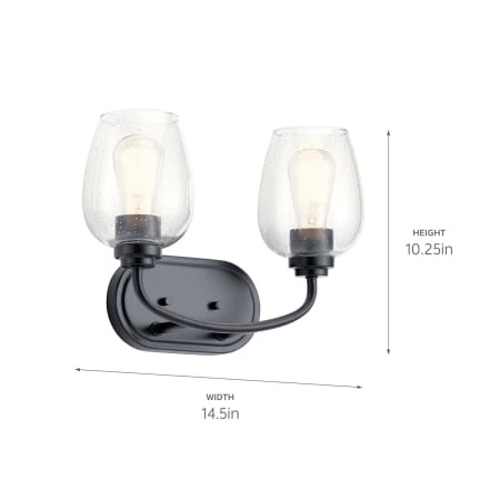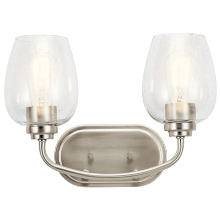 The Valserrano 14.50 inch 2 light vanity light features wine goblet shaped clear seeded glass shades with a clean design. A perfect addition in several aesthetic environments including transitional, traditional or farmhouse decor.