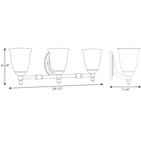 - Requires (3) 100 watt max medium (E26) base bulbs – Not Included